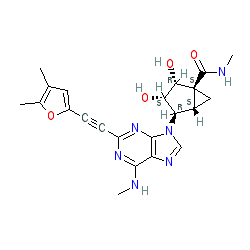 | SMILES | CNC(=O)[C@@]12C[C@@H]1[C@@H](n1cnc3c(NC)nc(C#Cc4cc(C)c(C)o4)nc31)[C@H](O)[C@@H]2O |