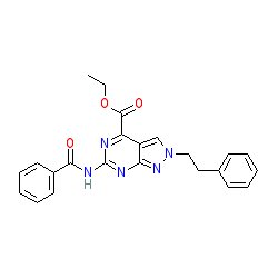 | SMILES | CCOC(=O)c1nc(NC(=O)c2ccccc2)nc2nn(CCc3ccccc3)cc12 |