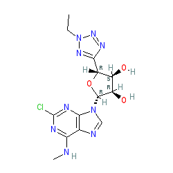 | SMILES | CCn1nnc([C@H]2O[C@@H](n3cnc4c(NC)nc(Cl)nc43)[C@H](O)[C@@H]2O)n1 |