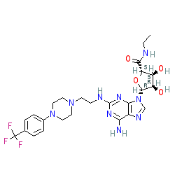 | SMILES | CCNC(=O)[C@H]1O[C@@H](n2cnc3c(N)nc(NCCN4CCN(c5ccc(C(F)(F)F)cc5)CC4)nc32)[C@H](O)[C@@H]1O |