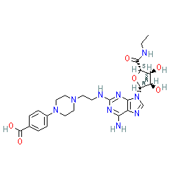 | SMILES | CCNC(=O)[C@H]1O[C@@H](n2cnc3c(N)nc(NCCN4CCN(c5ccc(C(=O)O)cc5)CC4)nc32)[C@H](O)[C@@H]1O |