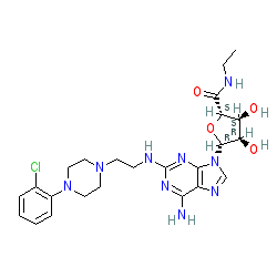 | SMILES | CCNC(=O)[C@H]1O[C@@H](n2cnc3c(N)nc(NCCN4CCN(c5ccccc5Cl)CC4)nc32)[C@H](O)[C@@H]1O |