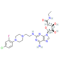 | SMILES | CCNC(=O)[C@H]1O[C@@H](n2cnc3c(N)nc(NCCN4CCN(c5ccc(Cl)cc5F)CC4)nc32)[C@H](O)[C@@H]1O |