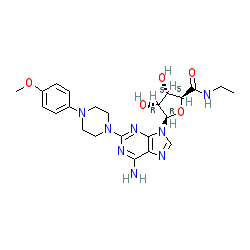 | SMILES | CCNC(=O)[C@H]1O[C@@H](n2cnc3c(N)nc(N4CCN(c5ccc(OC)cc5)CC4)nc32)[C@H](O)[C@@H]1O |