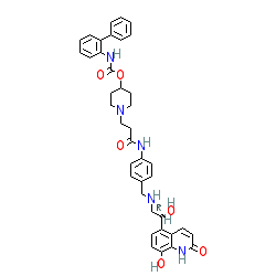 | SMILES | O=C(CCN1CCC(OC(=O)Nc2ccccc2-c2ccccc2)CC1)Nc1ccc(CNC[C@H](O)c2ccc(O)c3[nH]c(=O)ccc23)cc1 |