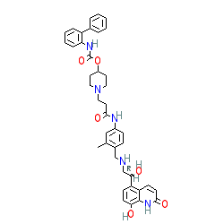 | SMILES | Cc1cc(NC(=O)CCN2CCC(OC(=O)Nc3ccccc3-c3ccccc3)CC2)ccc1CNC[C@H](O)c1ccc(O)c2[nH]c(=O)ccc12 |