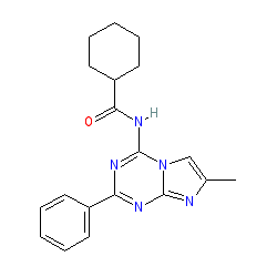 | SMILES | Cc1cn2c(NC(=O)C3CCCCC3)nc(-c3ccccc3)nc2n1 |