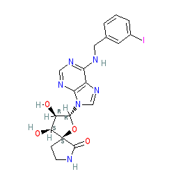 | SMILES | O=C1NCC[C@@]12O[C@@H](n1cnc3c(NCc4cccc(I)c4)ncnc31)[C@H](O)[C@@H]2O |