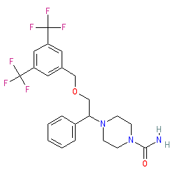 | SMILES | NC(=O)N1CCN(C(COCc2cc(C(F)(F)F)cc(C(F)(F)F)c2)c2ccccc2)CC1 |