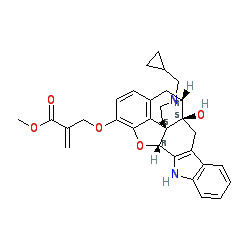 | SMILES | C=C(COc1ccc2c3c1O[C@H]1c4[nH]c5ccccc5c4C[C@@]4(O)[C@@H](C2)N(CC2CC2)CC[C@]314)C(=O)OC |
