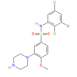 | SMILES | COc1ccc(S(=O)(=O)Nc2cc(Cl)cc(Br)c2Cl)cc1N1CCNCC1 |