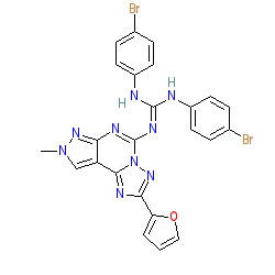 | SMILES | Cn1cc2c(nc(N=C(Nc3ccc(Br)cc3)Nc3ccc(Br)cc3)n3nc(-c4ccco4)nc23)n1 |