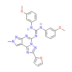 | SMILES | COc1cccc(NC(=Nc2nc3nn(C)cc3c3nc(-c4ccco4)nn23)Nc2cccc(OC)c2)c1 |