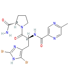 | SMILES | Cc1cnc(C(=O)N[C@@H](Cc2nc(Br)[nH]c2Br)C(=O)N2CCC[C@H]2C(N)=O)cn1 |