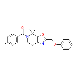 | SMILES | CC1(C)c2oc(COc3ccccc3)nc2CCN1C(=O)c1ccc(F)cc1 |