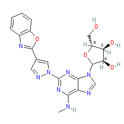 | SMILES | CNc1nc(-n2cc(-c3nc4ccccc4o3)cn2)nc2c1ncn2C1O[C@H](CO)[C@@H](O)[C@H]1O |