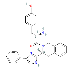 | SMILES | N[C@@H](Cc1ccc(O)cc1)C(=O)N1Cc2ccccc2C[C@H]1c1nc(-c2ccccc2)c[nH]1 |