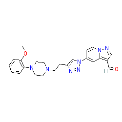 | SMILES | COc1ccccc1N1CCN(CCc2cn(-c3ccn4ncc(C=O)c4c3)nn2)CC1 |