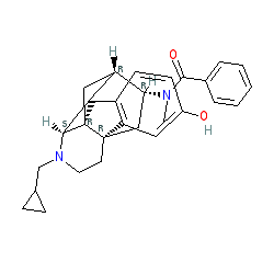 | SMILES | CN(C(=O)c1ccccc1)[C@@H]1C[C@@]23CCN(CC4CC4)[C@H]4CC[C@@H]1C[C@]42Cc1ccc(O)cc13 |