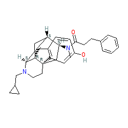 | SMILES | CN(C(=O)CCc1ccccc1)[C@H]1C[C@@]23CCN(CC4CC4)[C@H]4C=C[C@@H]1C[C@]42Cc1ccc(O)cc13 |