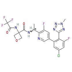 | SMILES | C[C@@H](NC(=O)C1(NC(=O)C(F)(F)F)COC1)c1ncc(-c2cc(Cl)cc(F)c2-c2nnn(C)n2)cc1F |