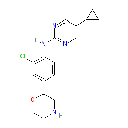 | SMILES | Clc1cc(C2CNCCO2)ccc1Nc1ncc(C2CC2)cn1 |
