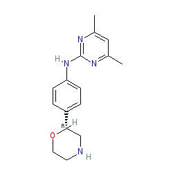 | SMILES | Cc1cc(C)nc(Nc2ccc([C@@H]3CNCCO3)cc2)n1 |
