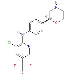 | SMILES | FC(F)(F)c1cnc(Nc2ccc([C@@H]3CNCCO3)cc2)c(Cl)c1 |