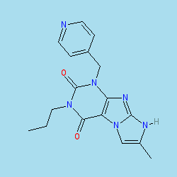 | SMILES | CCCn1c(=O)c2c(nc3[nH]c(C)cn32)n(Cc2ccncc2)c1=O |