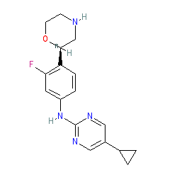 | SMILES | Fc1cc(Nc2ncc(C3CC3)cn2)ccc1[C@@H]1CNCCO1 |
