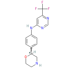 | SMILES | FC(F)(F)c1cc(Nc2ccc([C@@H]3CNCCO3)cc2)ncn1 |