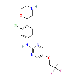 | SMILES | FC(F)(F)COc1cnc(Nc2ccc(C3CNCCO3)c(Cl)c2)nc1 |