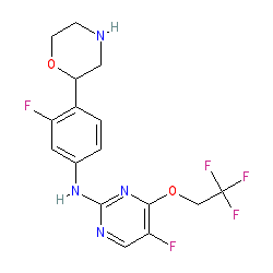 | SMILES | Fc1cc(Nc2ncc(F)c(OCC(F)(F)F)n2)ccc1C1CNCCO1 |