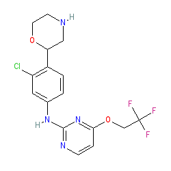 | SMILES | FC(F)(F)COc1ccnc(Nc2ccc(C3CNCCO3)c(Cl)c2)n1 |