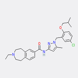 | SMILES | CCN1CCc2ccc(C(=O)Nc3cc(C)n(Cc4cc(Cl)ccc4OCC(C)C)n3)cc2CC1 |