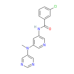 | SMILES | CN(c1cncnc1)c1cncc(NC(=O)c2cccc(Cl)c2)c1 |