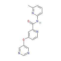 | SMILES | Cc1cccc(NC(=O)c2cc(Oc3cncnc3)ccn2)n1 |