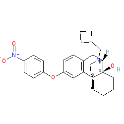 | SMILES | O=[N+]([O-])c1ccc(Oc2ccc3c(c2)[C@@]24CCCC[C@@]2(O)[C@@H](C3)N(CC2CCC2)CC4)cc1 |