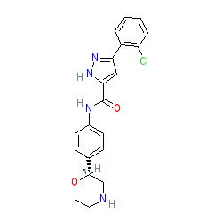 | SMILES | O=C(Nc1ccc([C@@H]2CNCCO2)cc1)c1cc(-c2ccccc2Cl)n[nH]1 |