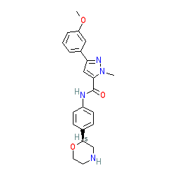 | SMILES | COc1cccc(-c2cc(C(=O)Nc3ccc([C@H]4CNCCO4)cc3)n(C)n2)c1 |