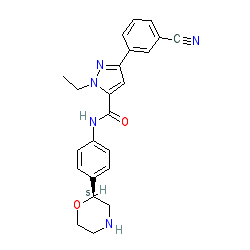 | SMILES | CCn1nc(-c2cccc(C#N)c2)cc1C(=O)Nc1ccc([C@H]2CNCCO2)cc1 |