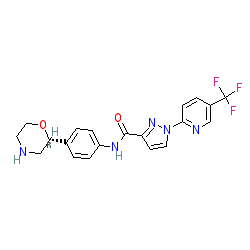 | SMILES | O=C(Nc1ccc([C@@H]2CNCCO2)cc1)c1ccn(-c2ccc(C(F)(F)F)cn2)n1 |