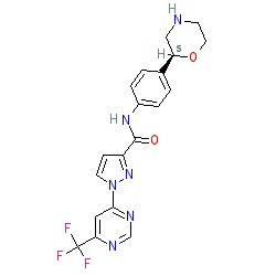 | SMILES | O=C(Nc1ccc([C@H]2CNCCO2)cc1)c1ccn(-c2cc(C(F)(F)F)ncn2)n1 |