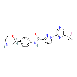 | SMILES | O=C(Nc1ccc([C@H]2CNCCO2)cc1)c1ccn(-c2cncc(C(F)(F)F)n2)n1 |