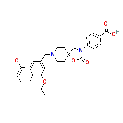 | SMILES | CCOc1cc(CN2CCC3(CC2)CN(c2ccc(C(=O)O)cc2)C(=O)O3)cc2c(OC)cccc12 |