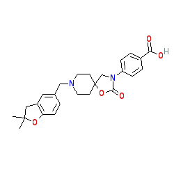 | SMILES | CC1(C)Cc2cc(CN3CCC4(CC3)CN(c3ccc(C(=O)O)cc3)C(=O)O4)ccc2O1 |