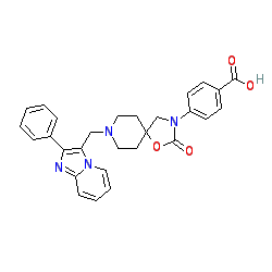 | SMILES | O=C(O)c1ccc(N2CC3(CCN(Cc4c(-c5ccccc5)nc5ccccn45)CC3)OC2=O)cc1 |