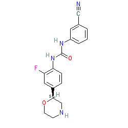 | SMILES | N#Cc1cccc(NC(=O)Nc2ccc([C@H]3CNCCO3)cc2F)c1 |