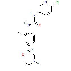 | SMILES | Cc1cc([C@@H]2CNCCO2)ccc1NC(=O)Nc1ccc(Cl)nc1 |