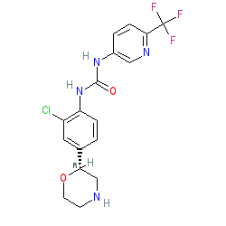 | SMILES | O=C(Nc1ccc(C(F)(F)F)nc1)Nc1ccc([C@@H]2CNCCO2)cc1Cl |